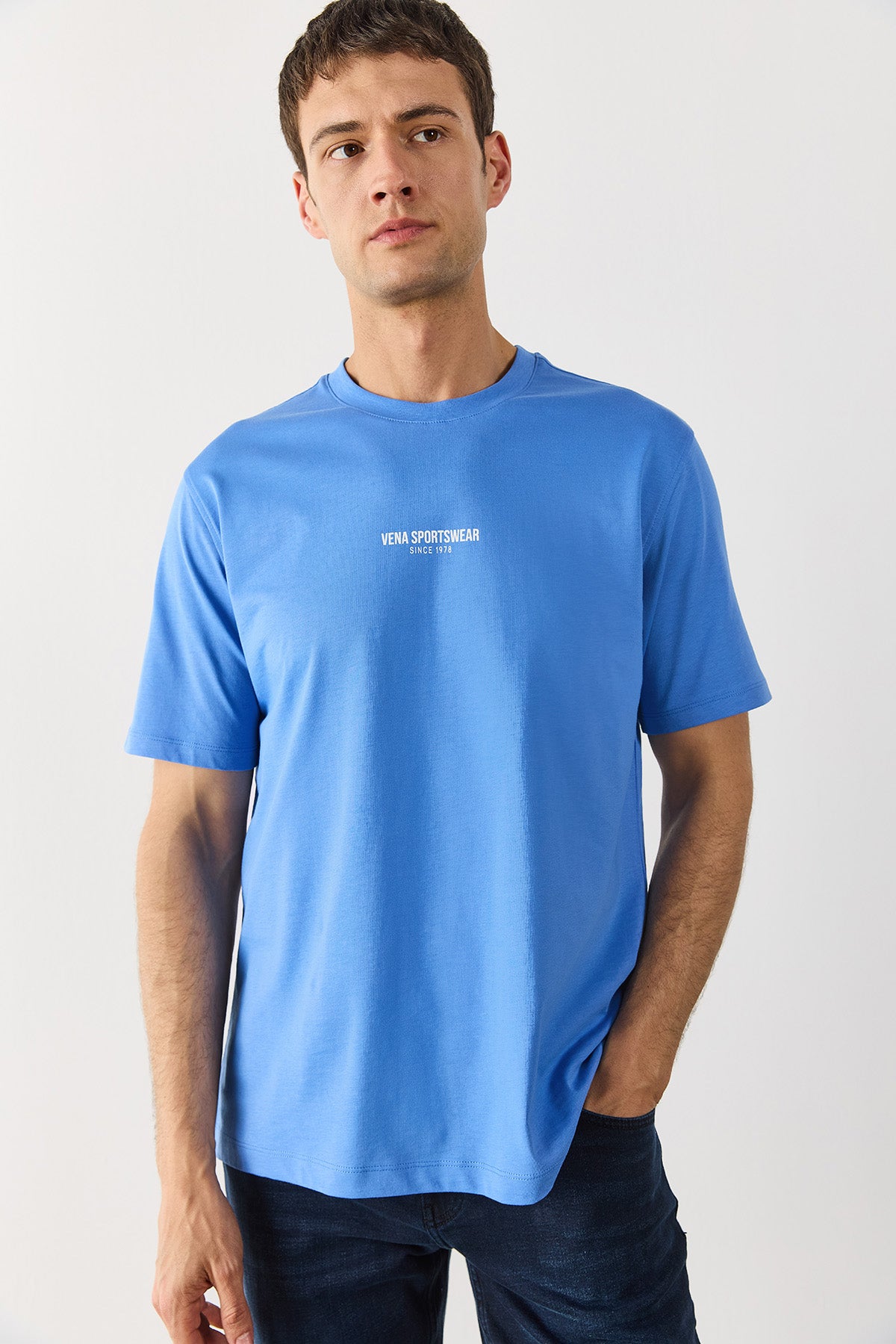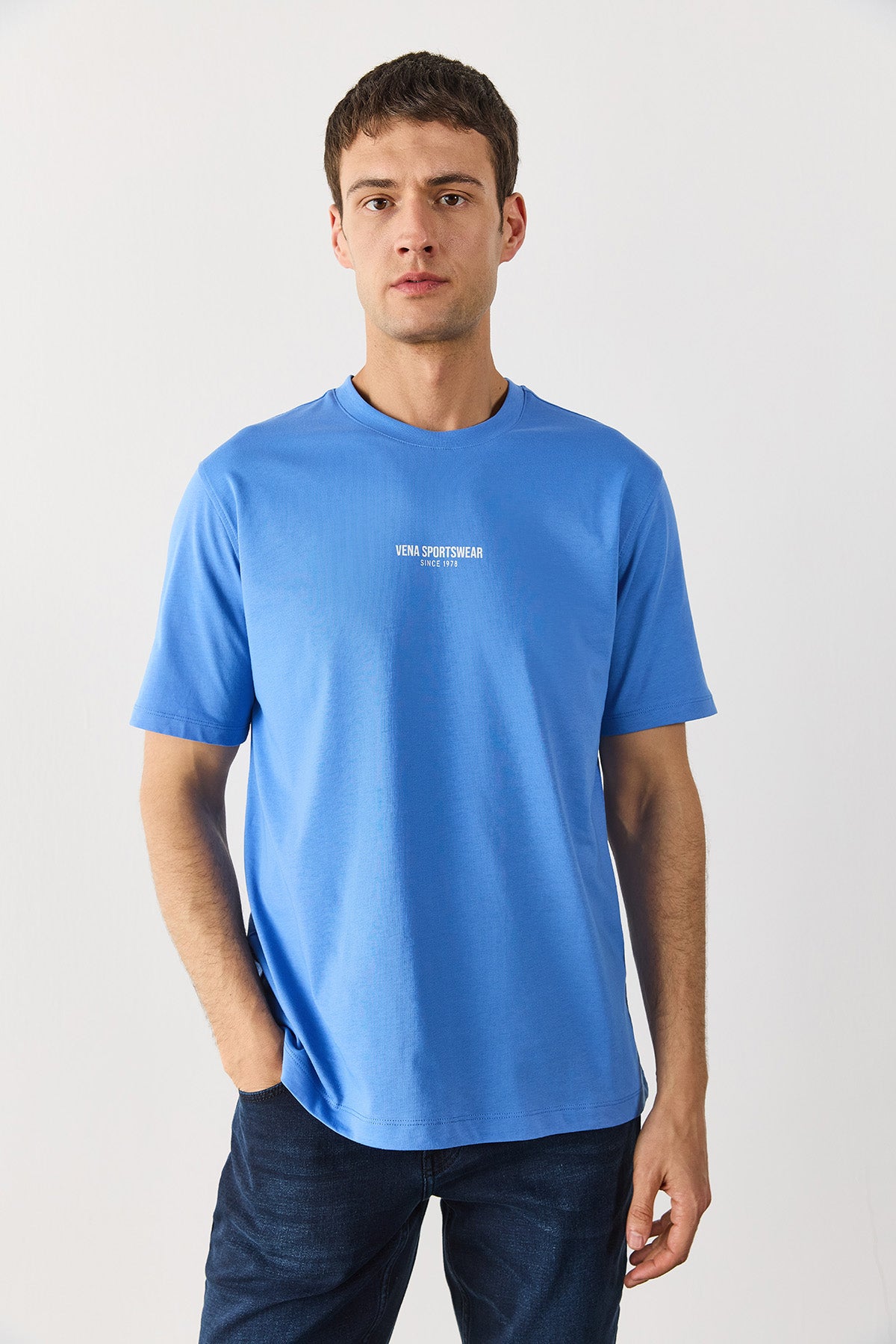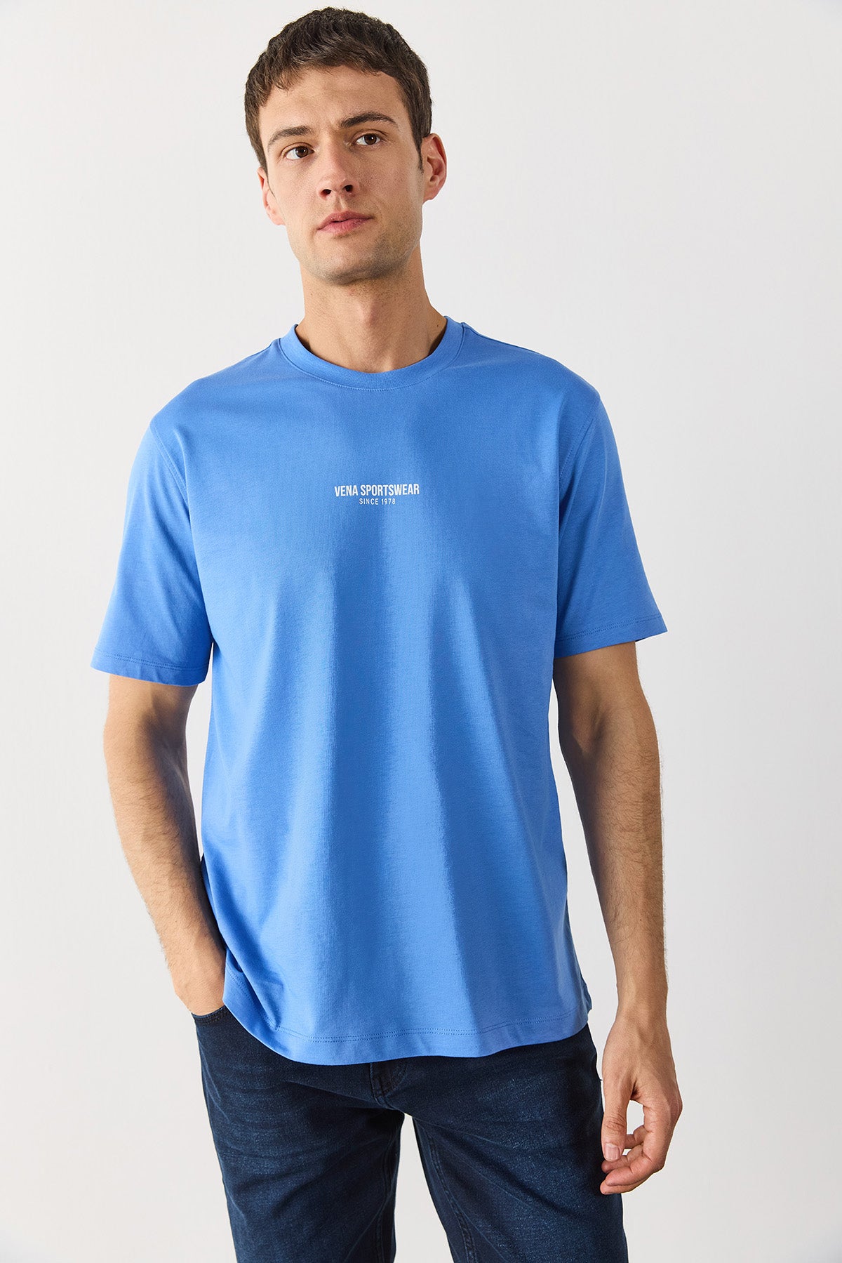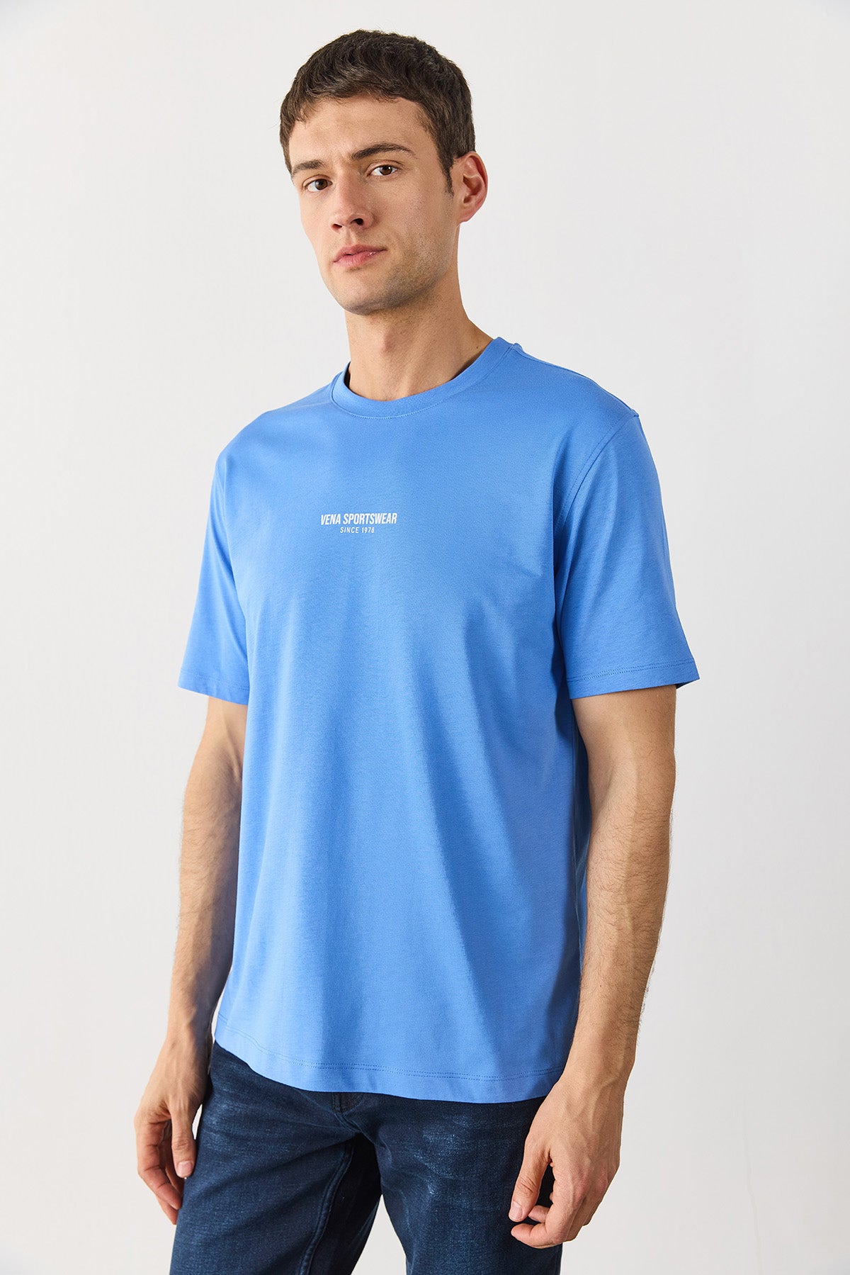 Erkek Vena Sports Baskılı Bisiklet Yaka Regular Fit Tişört %100 Pamuk - Mavi