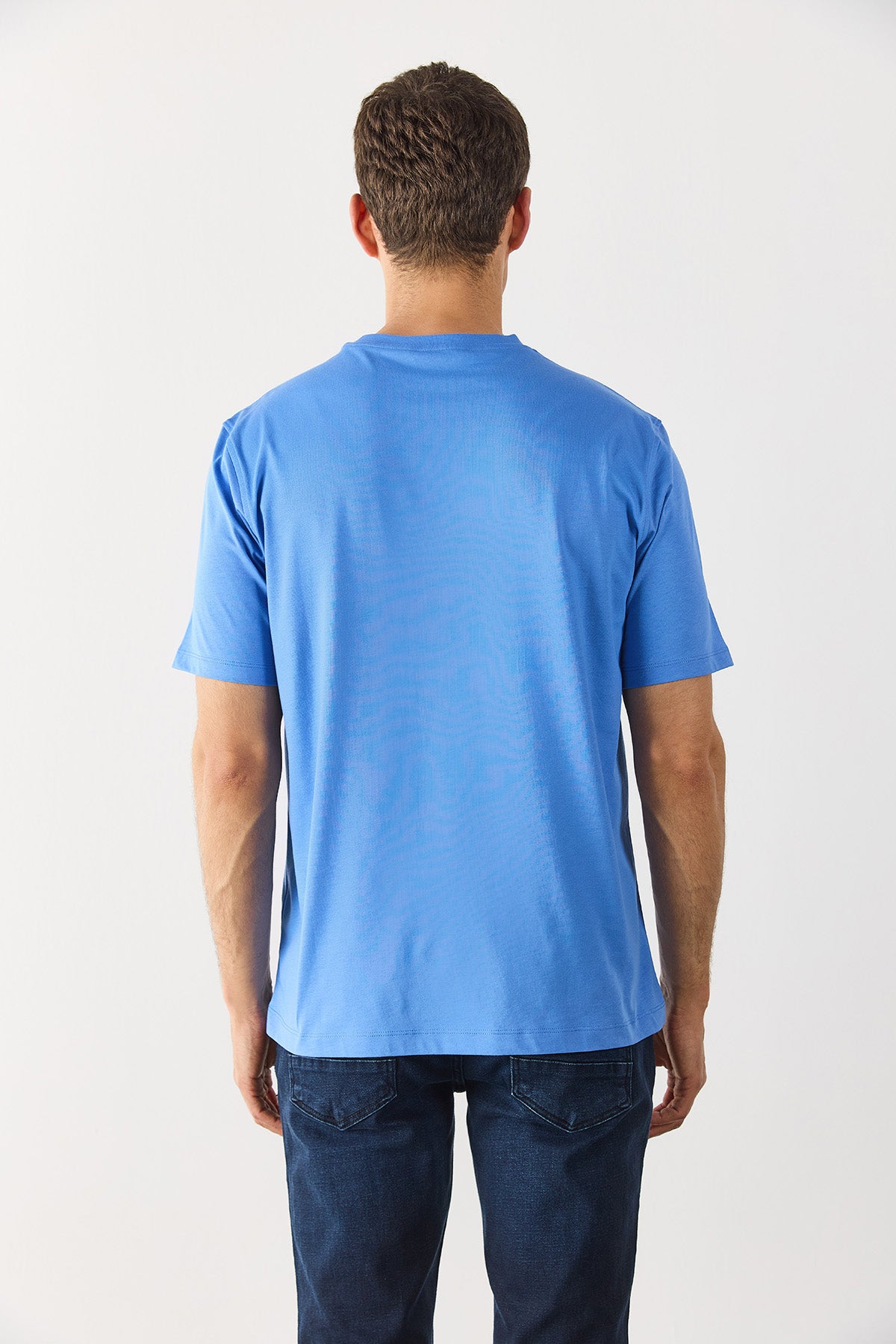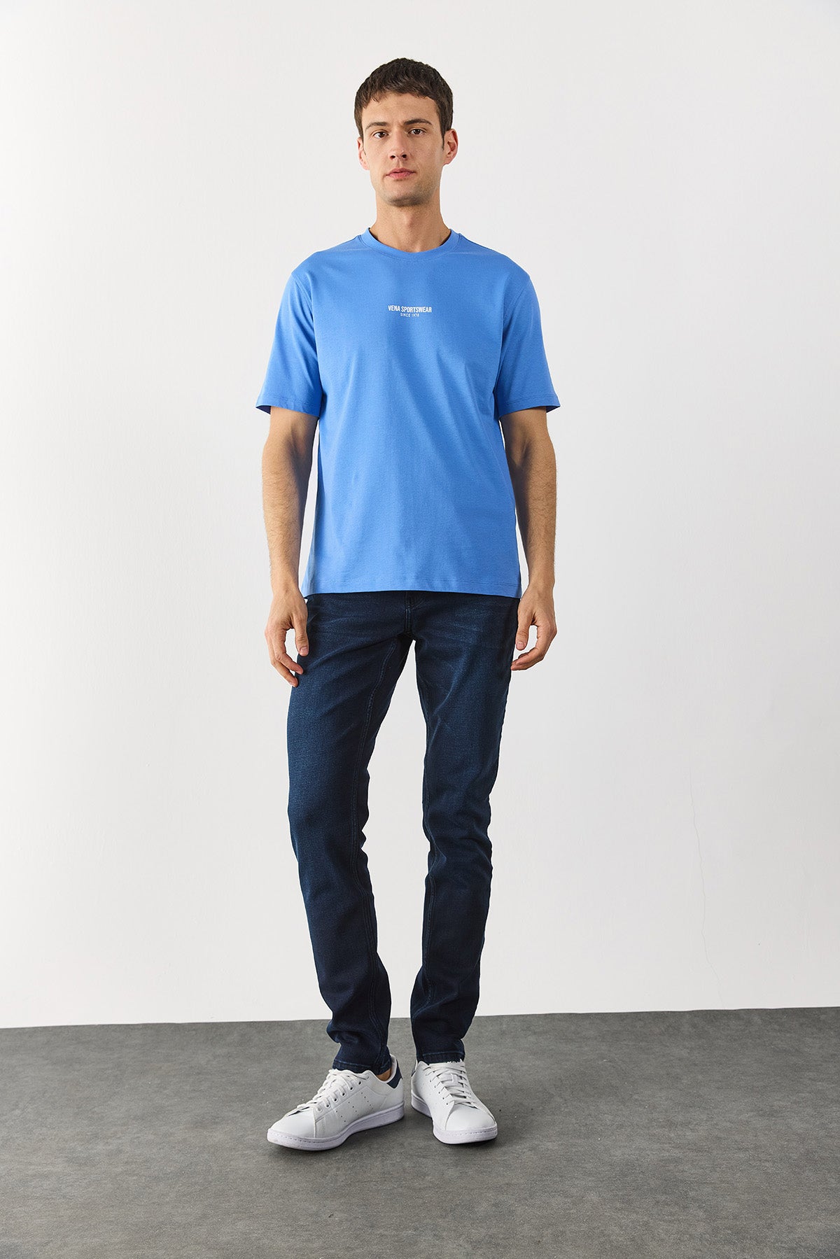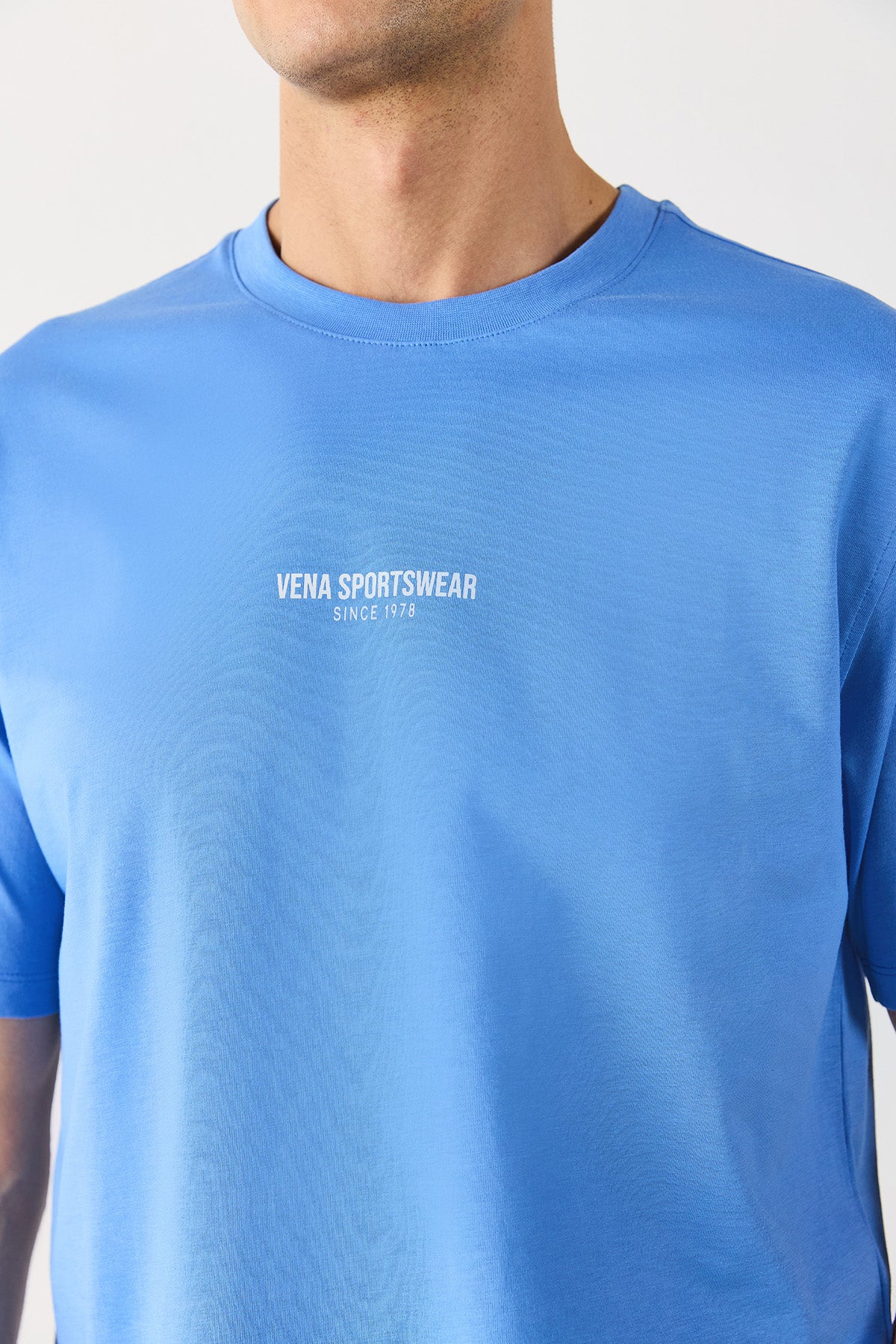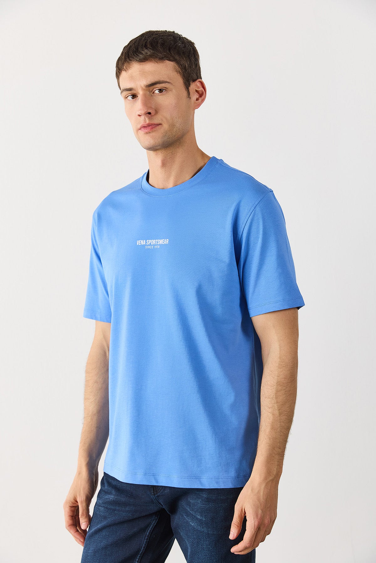 Erkek Vena Sports Baskılı Bisiklet Yaka Regular Fit Tişört %100 Pamuk - Mavi