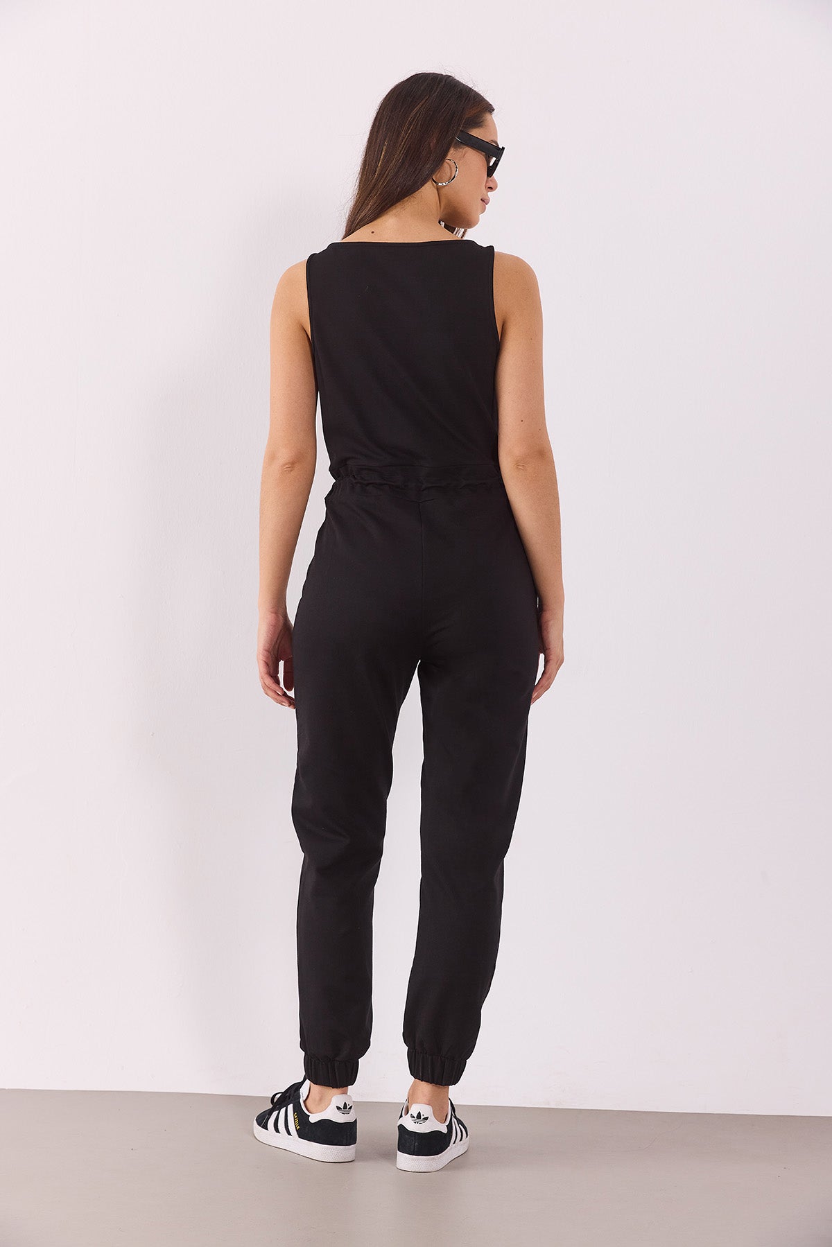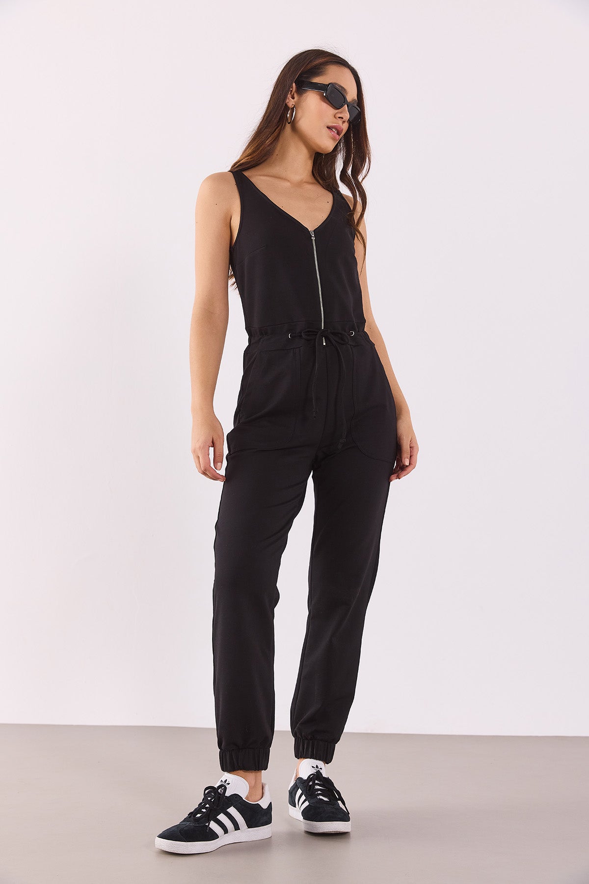 Kadın Veronica V Yaka Kolsuz Tulum - Siyah