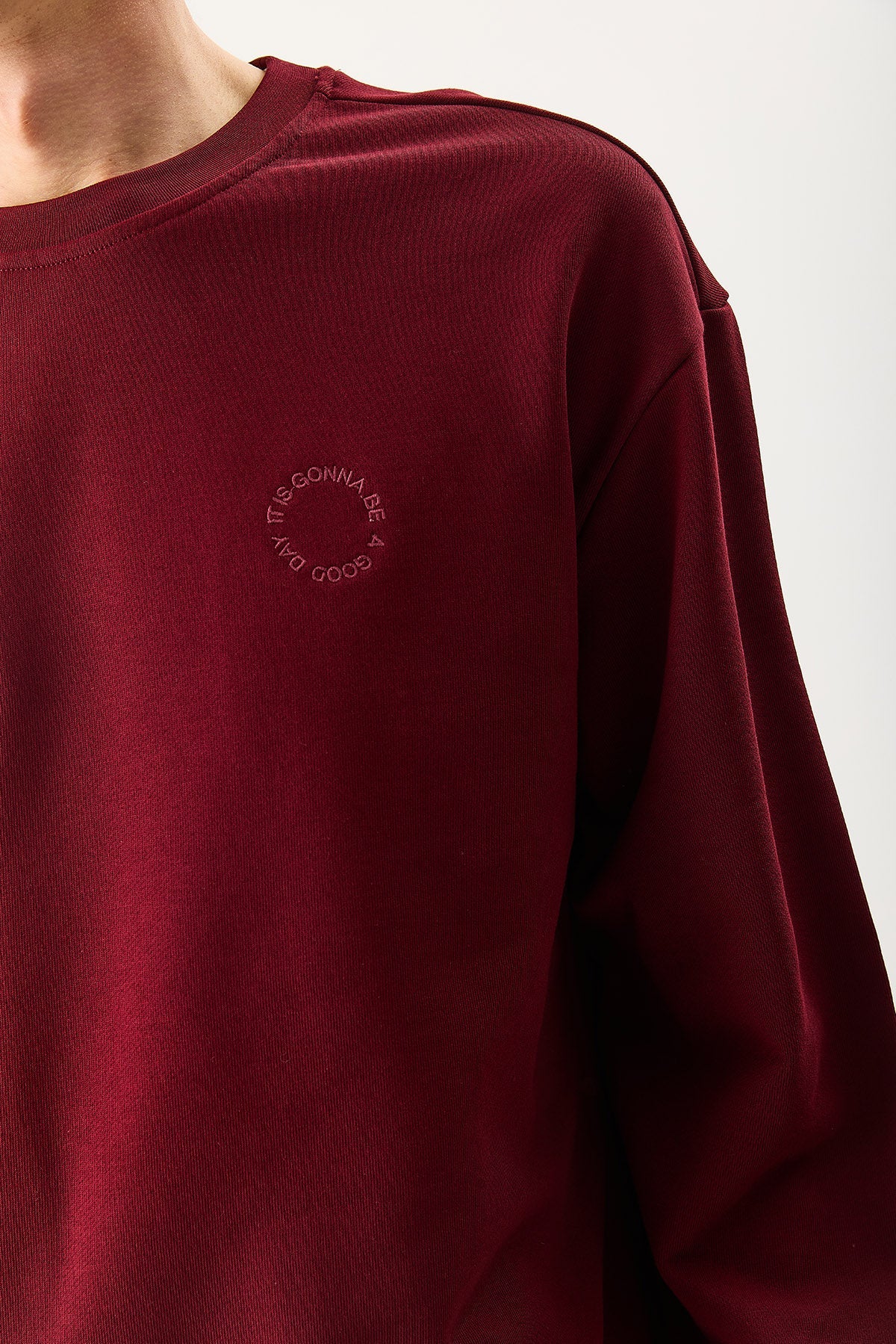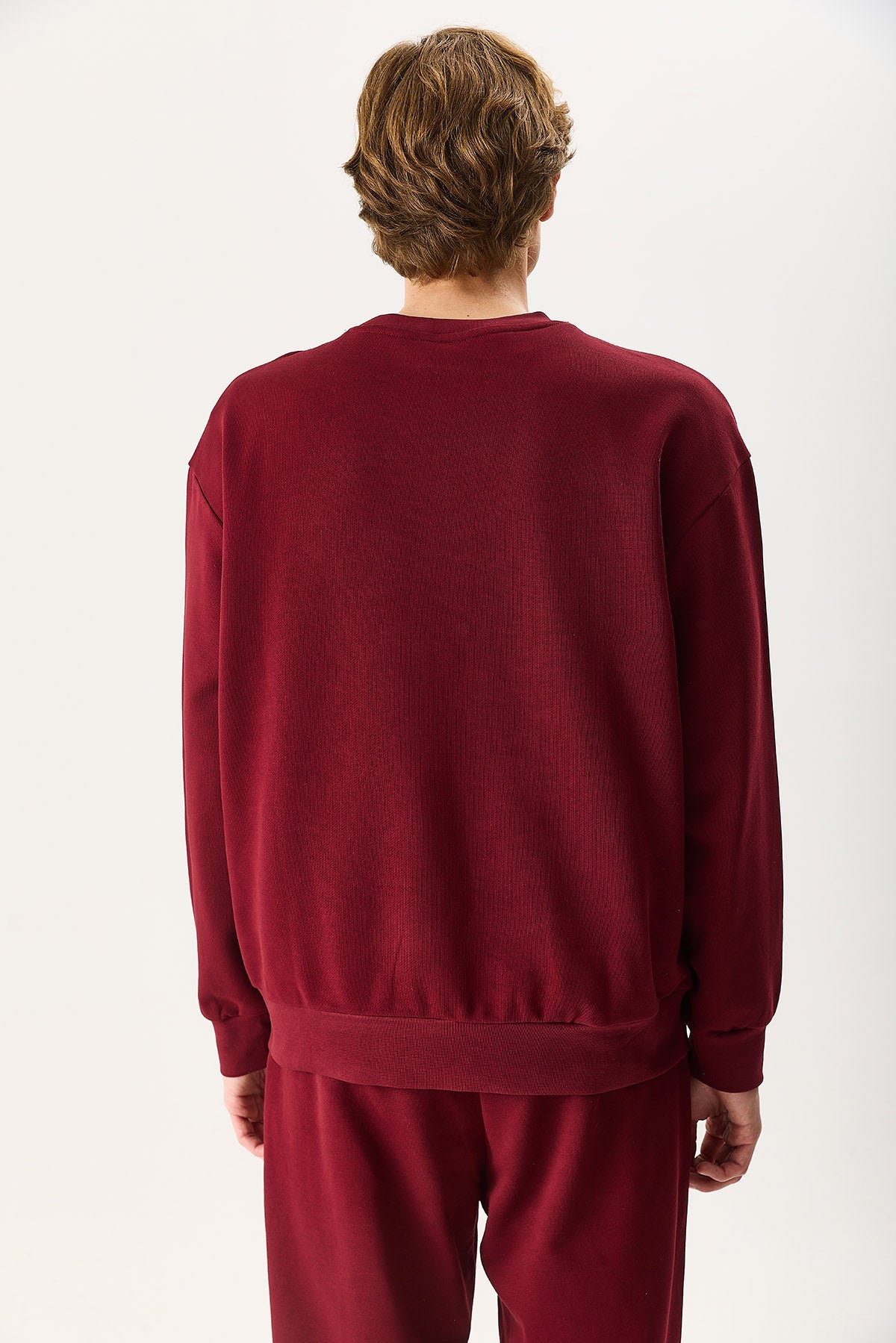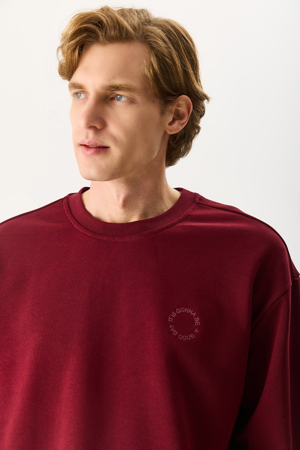 Erkek Viktor Nakış Detaylı Sweatshirt %100 Pamuk - Bordo (Beden) S
