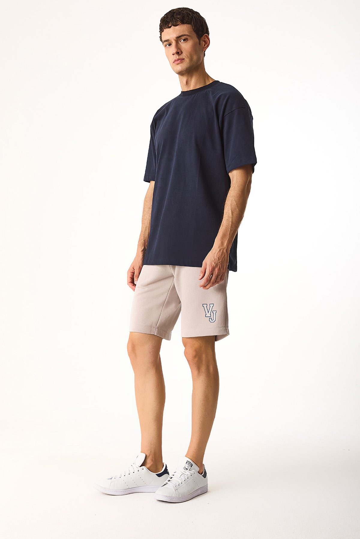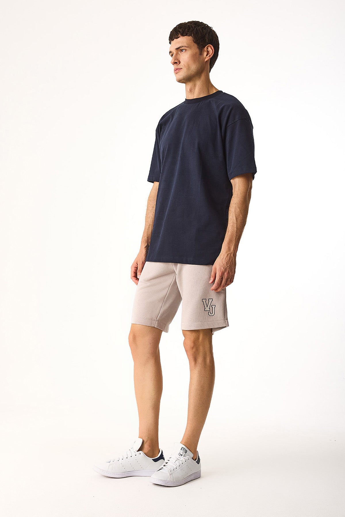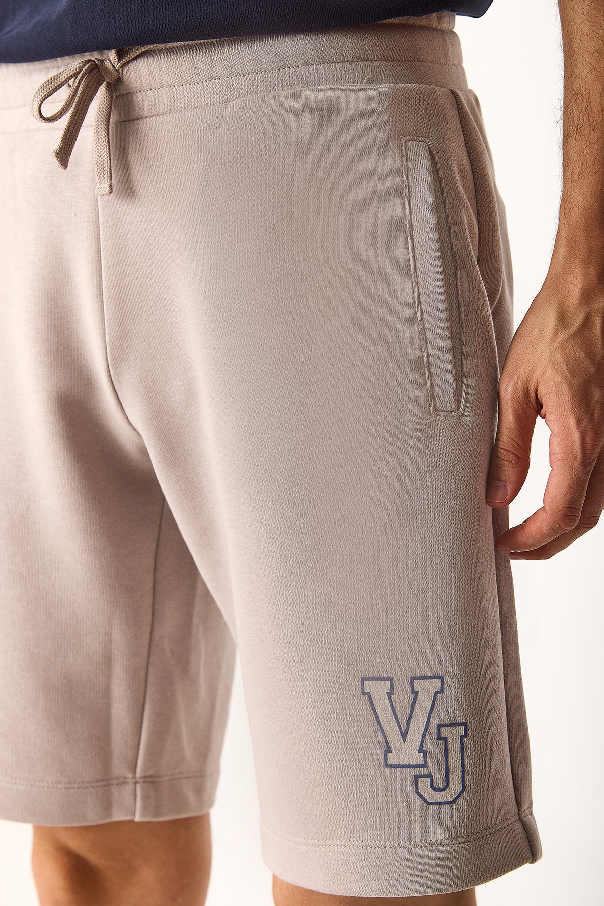 Erkek Vn Baskılı Pamuklu Şort - Buz Gri