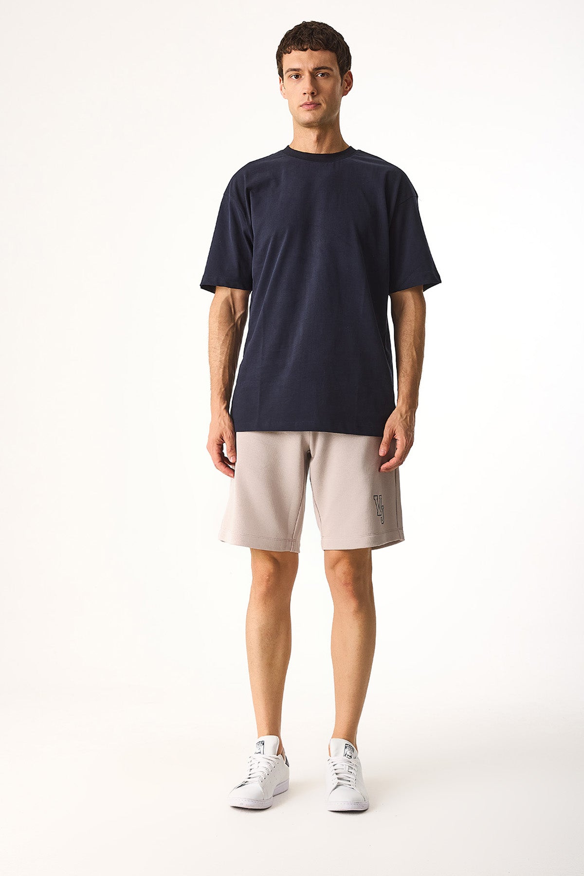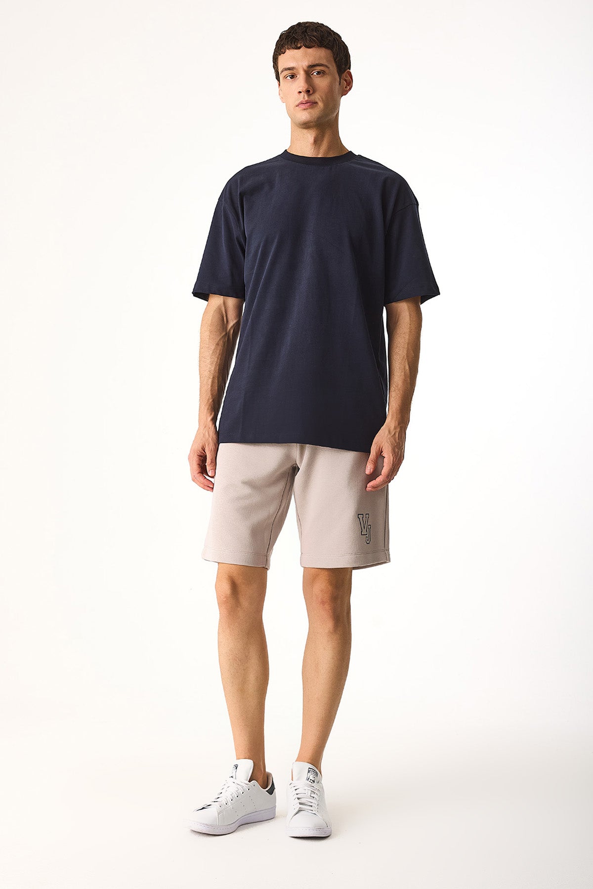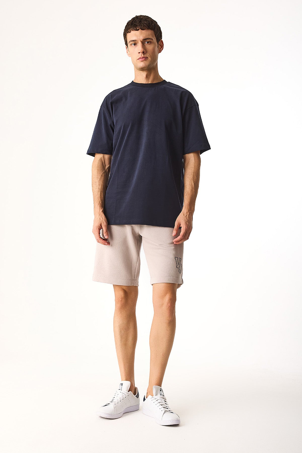 Erkek Vn Baskılı Pamuklu Şort - Buz Gri