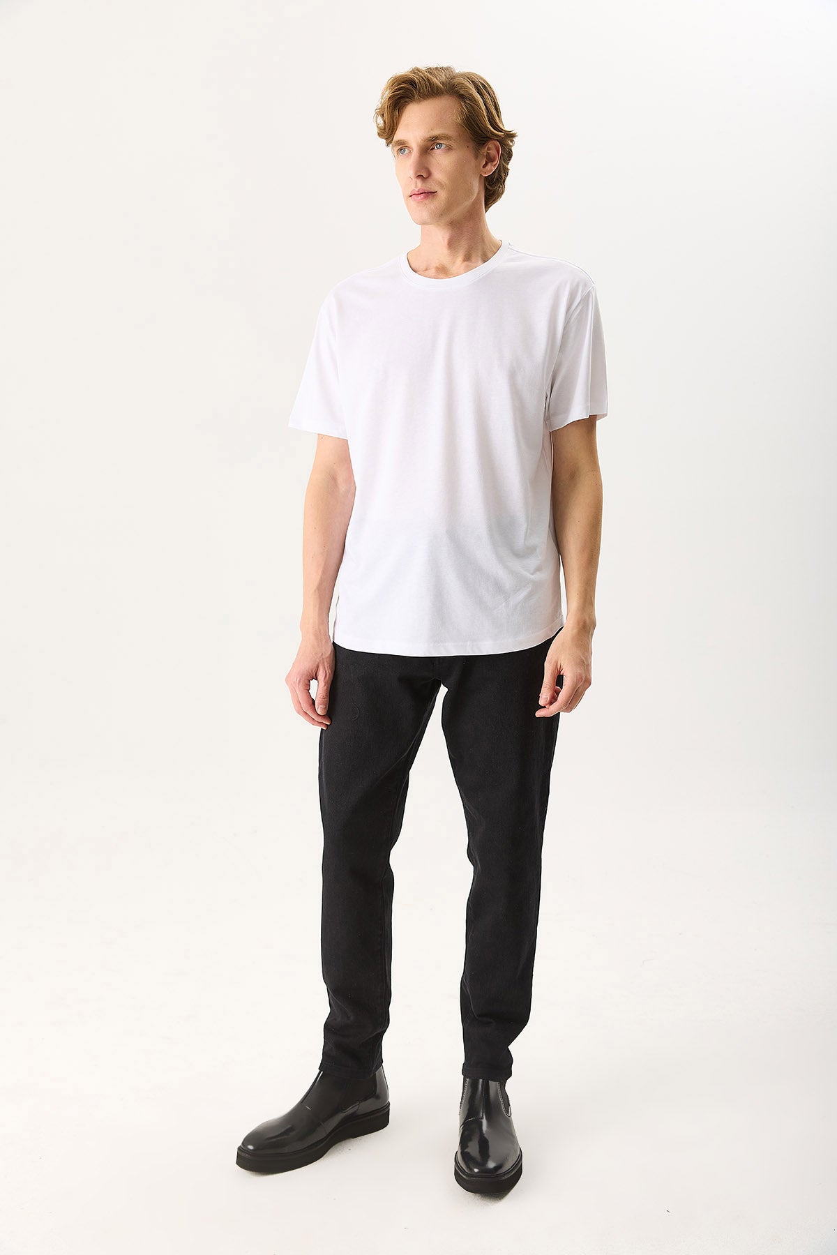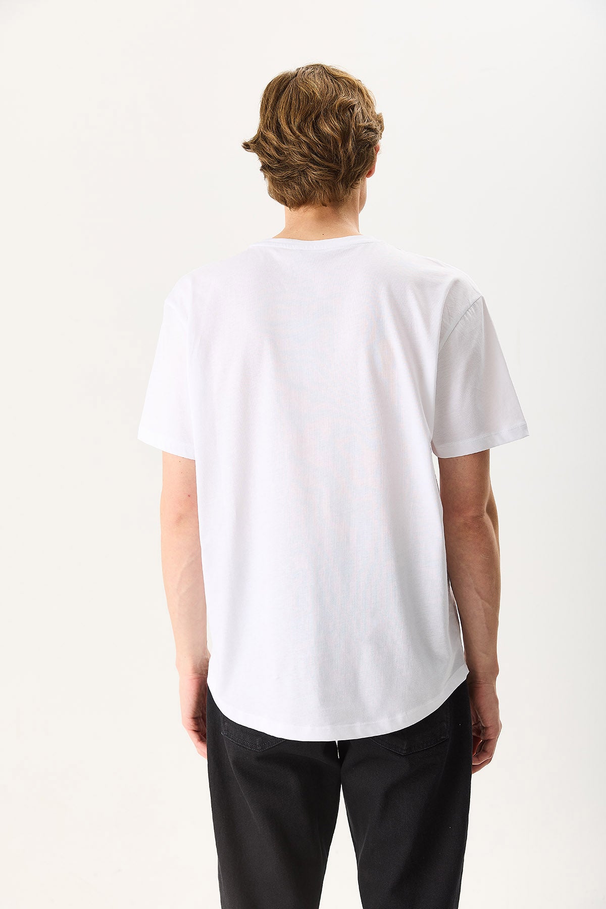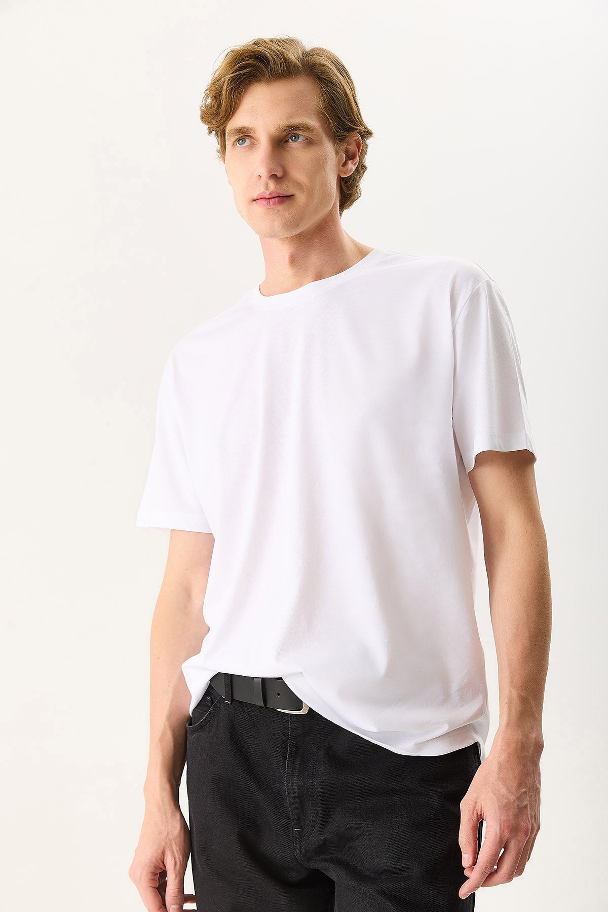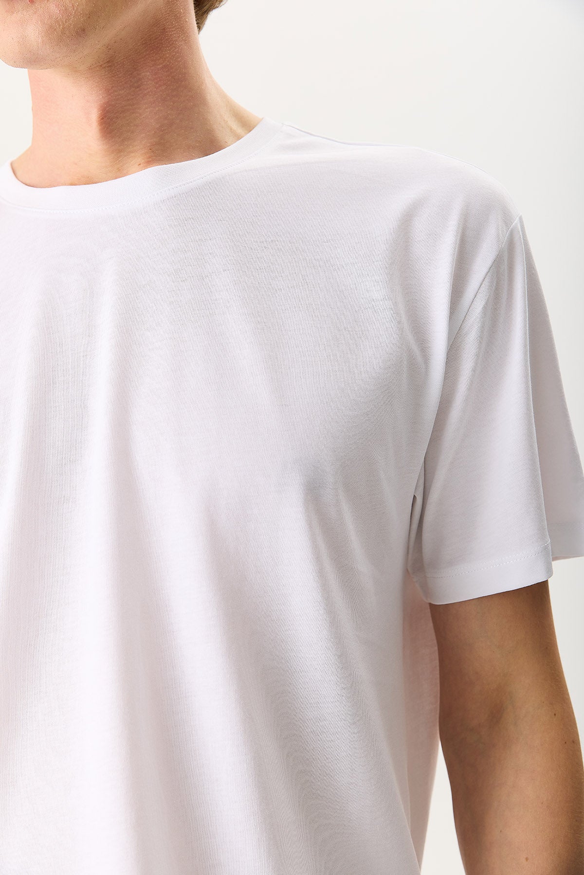 Erkek Walker Bisiklet Yaka Slim Fit Tişört %100 Pamuk - Beyaz