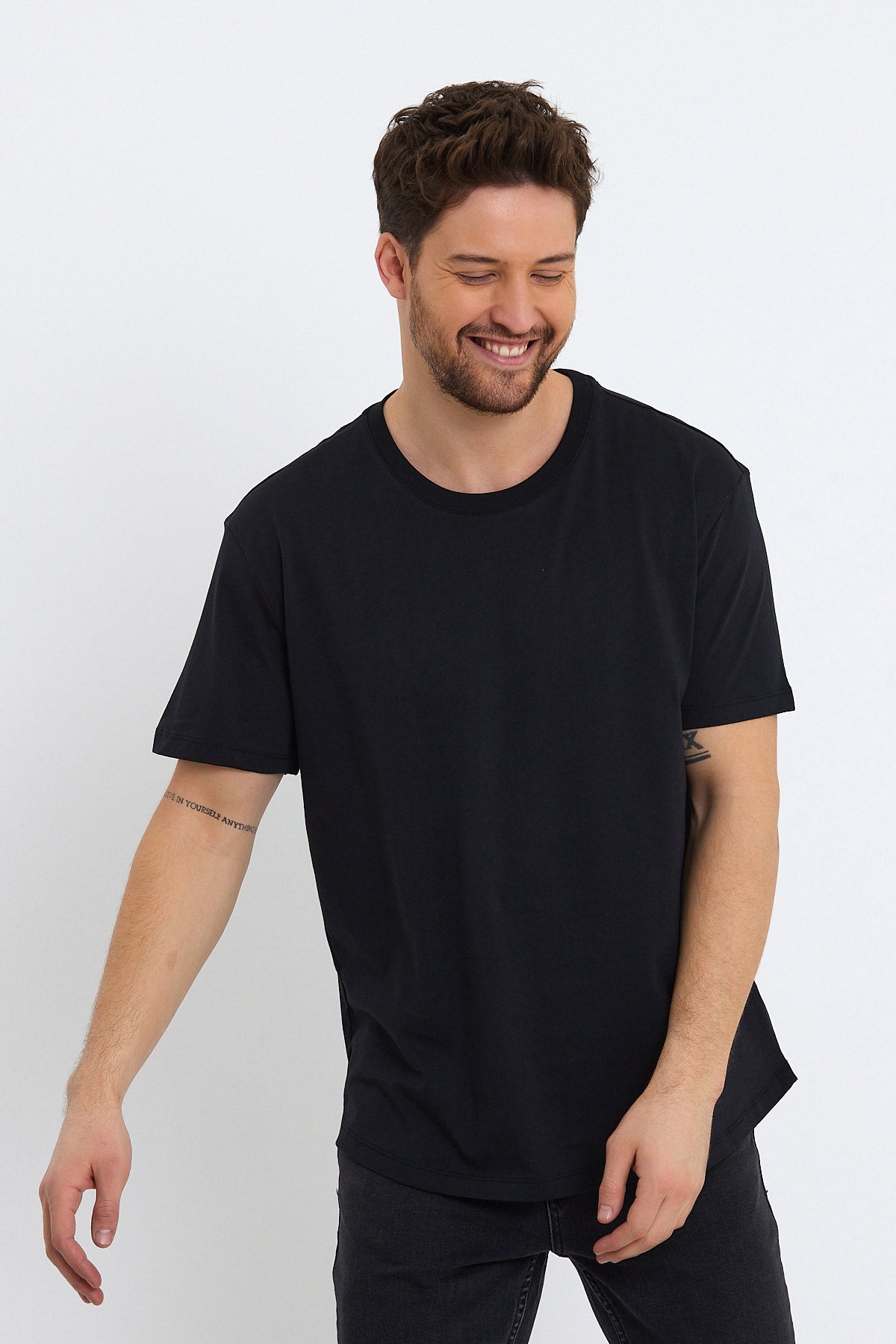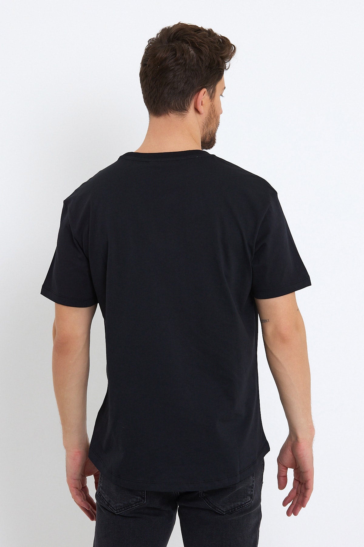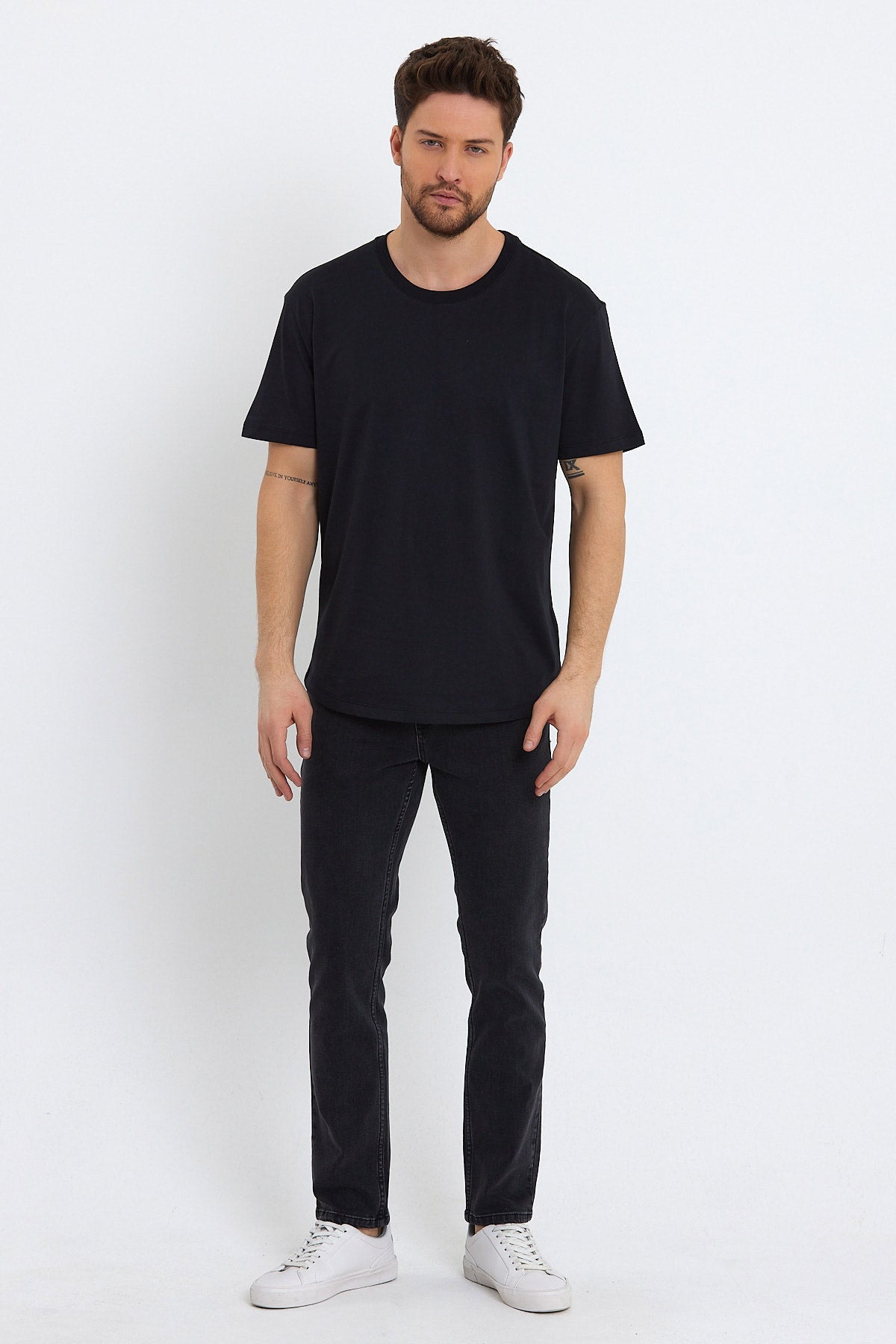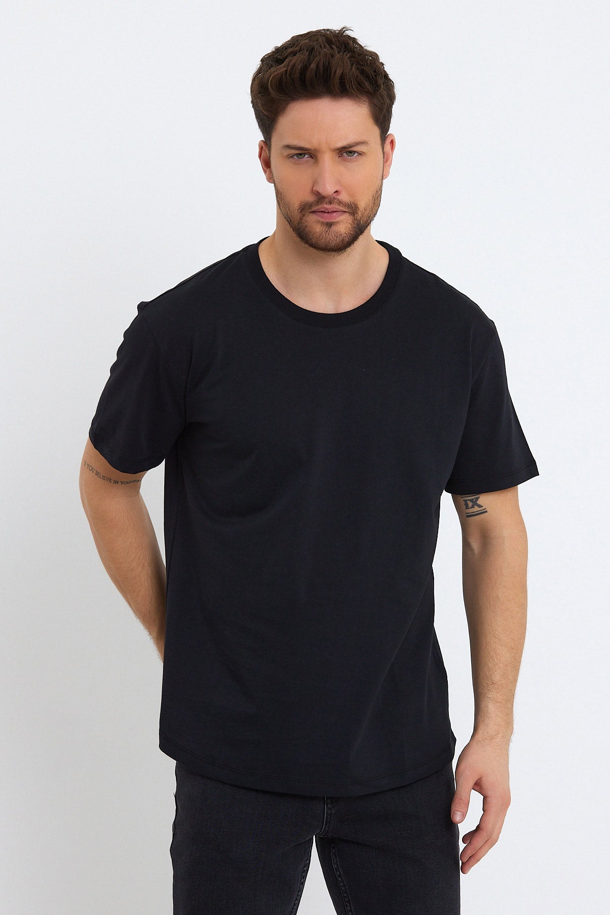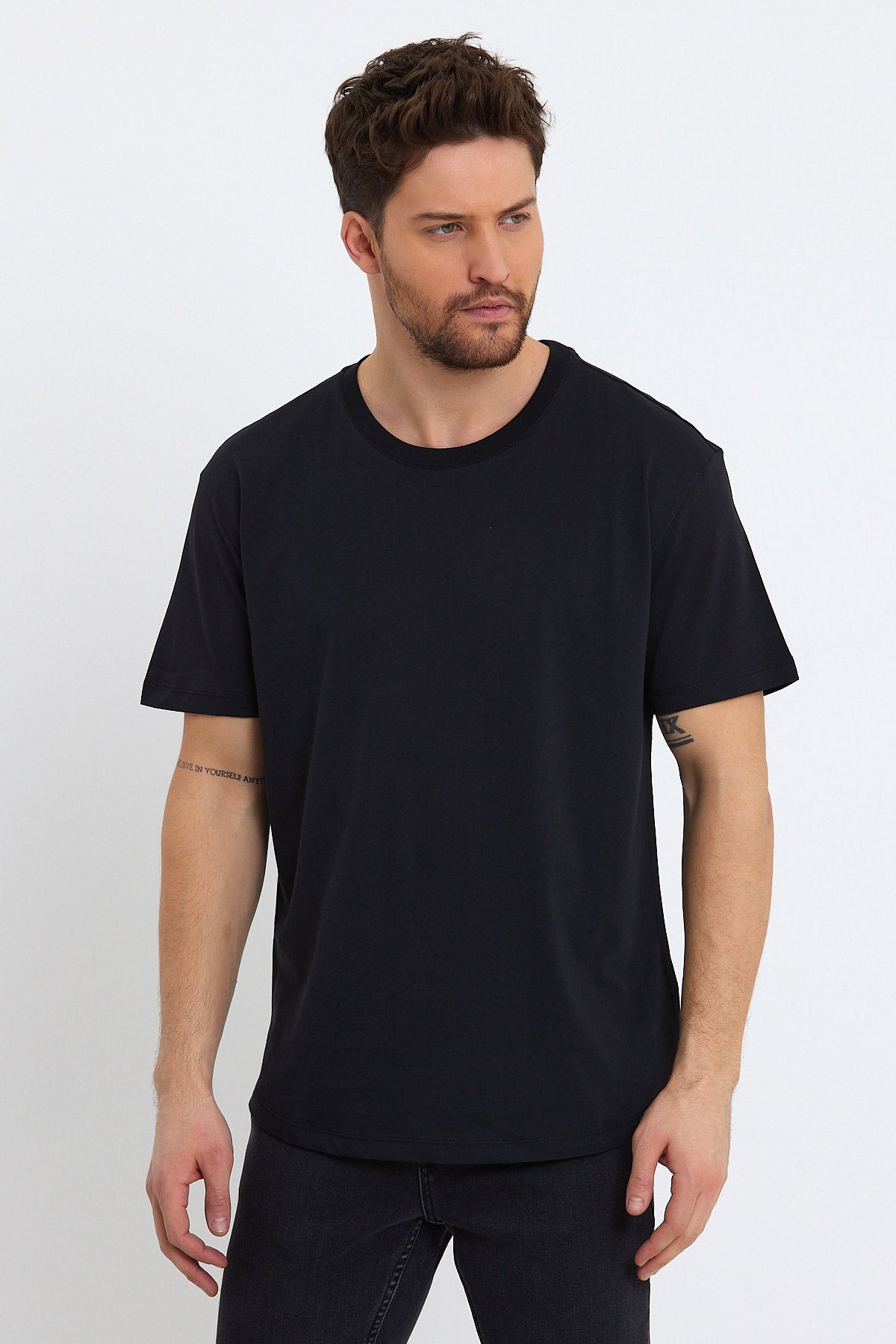 Erkek Walker Bisiklet Yaka Slim Fit Tişört %100 Pamuk - Siyah