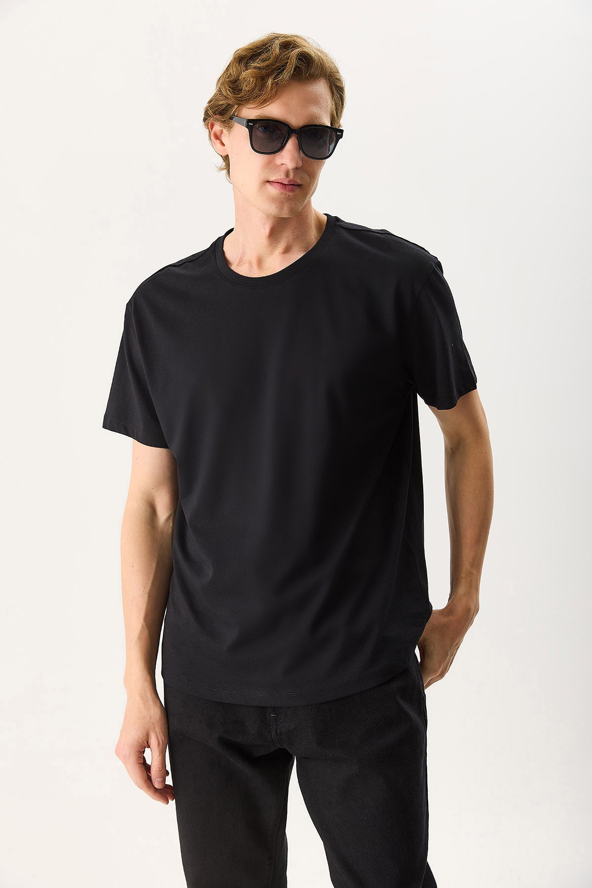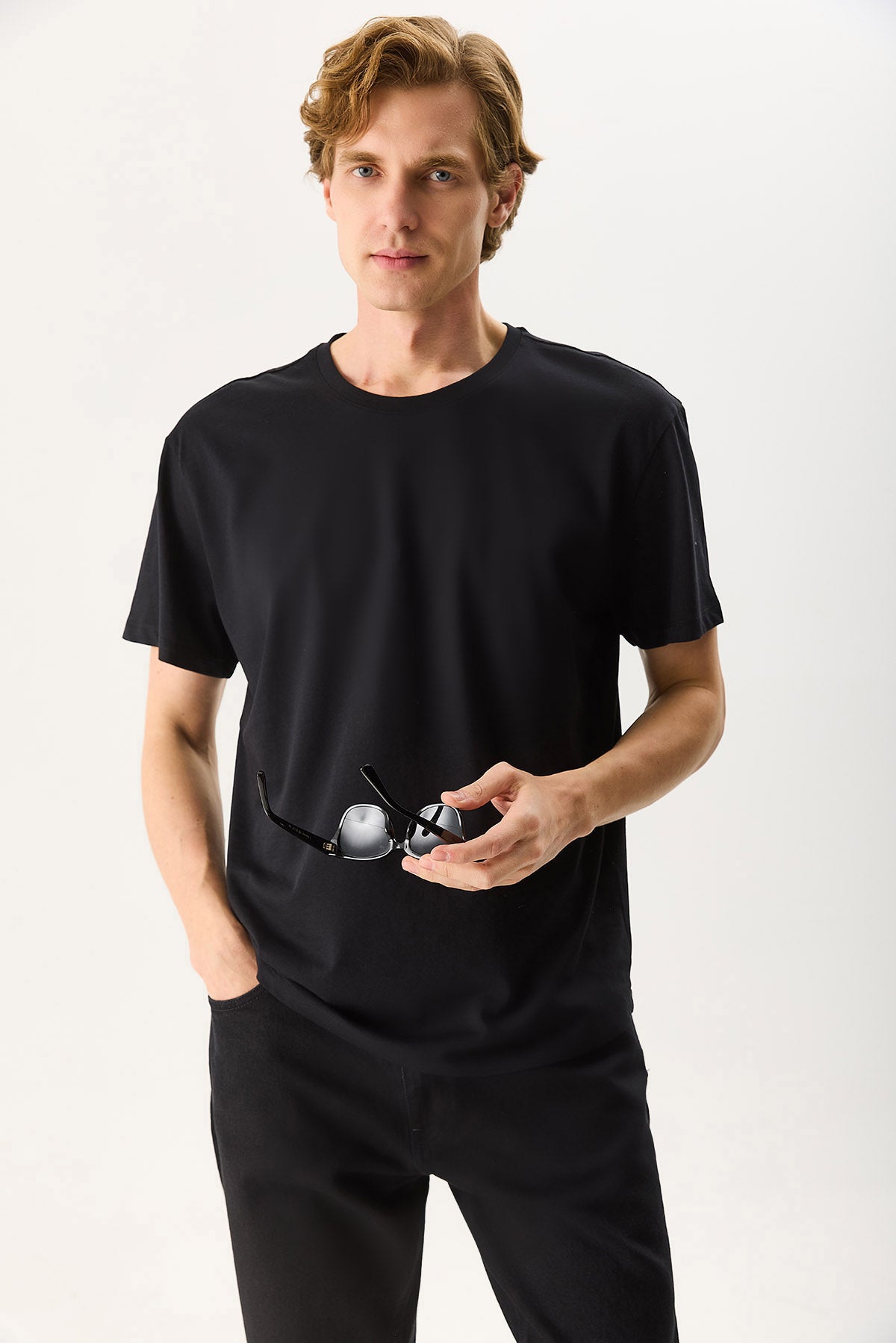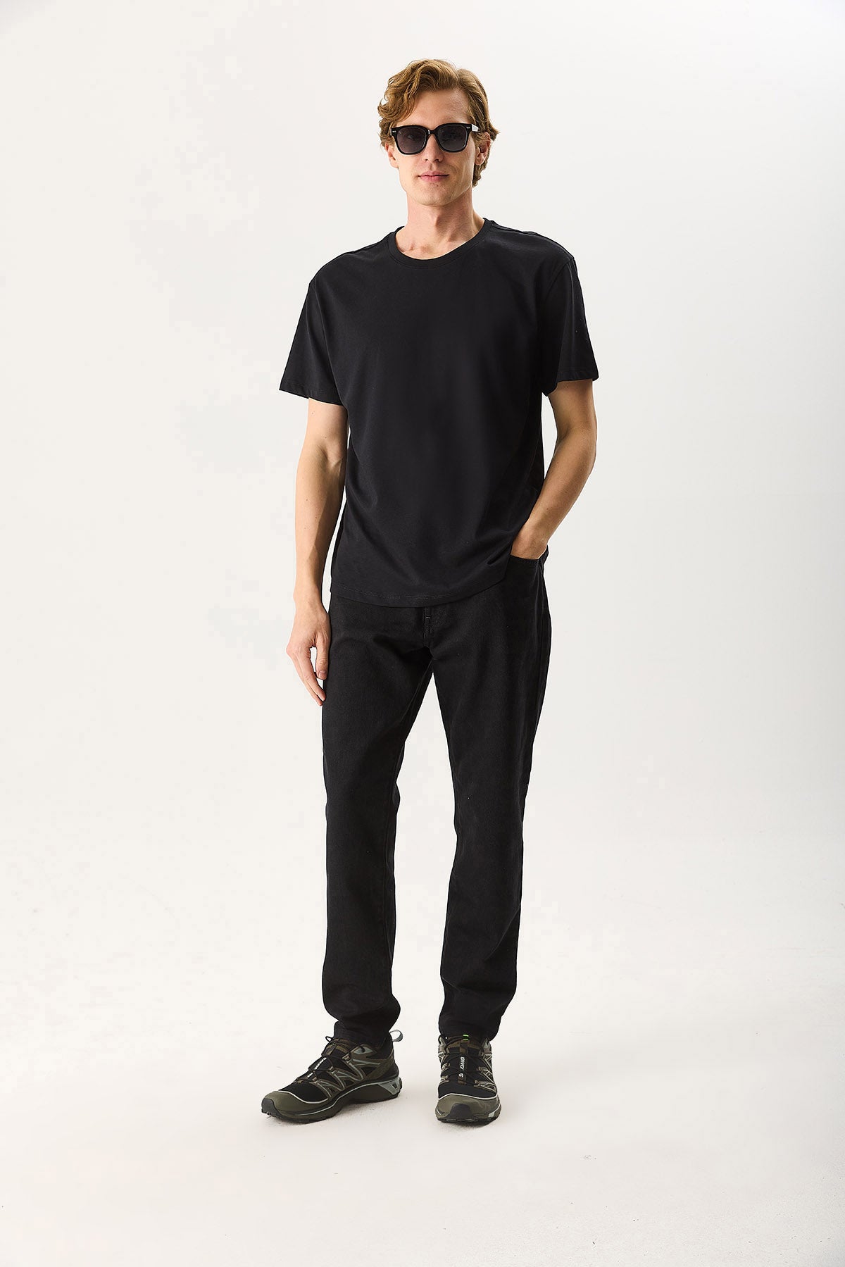 Erkek Walker Bisiklet Yaka Slim Fit Tişört %100 Pamuk - Siyah