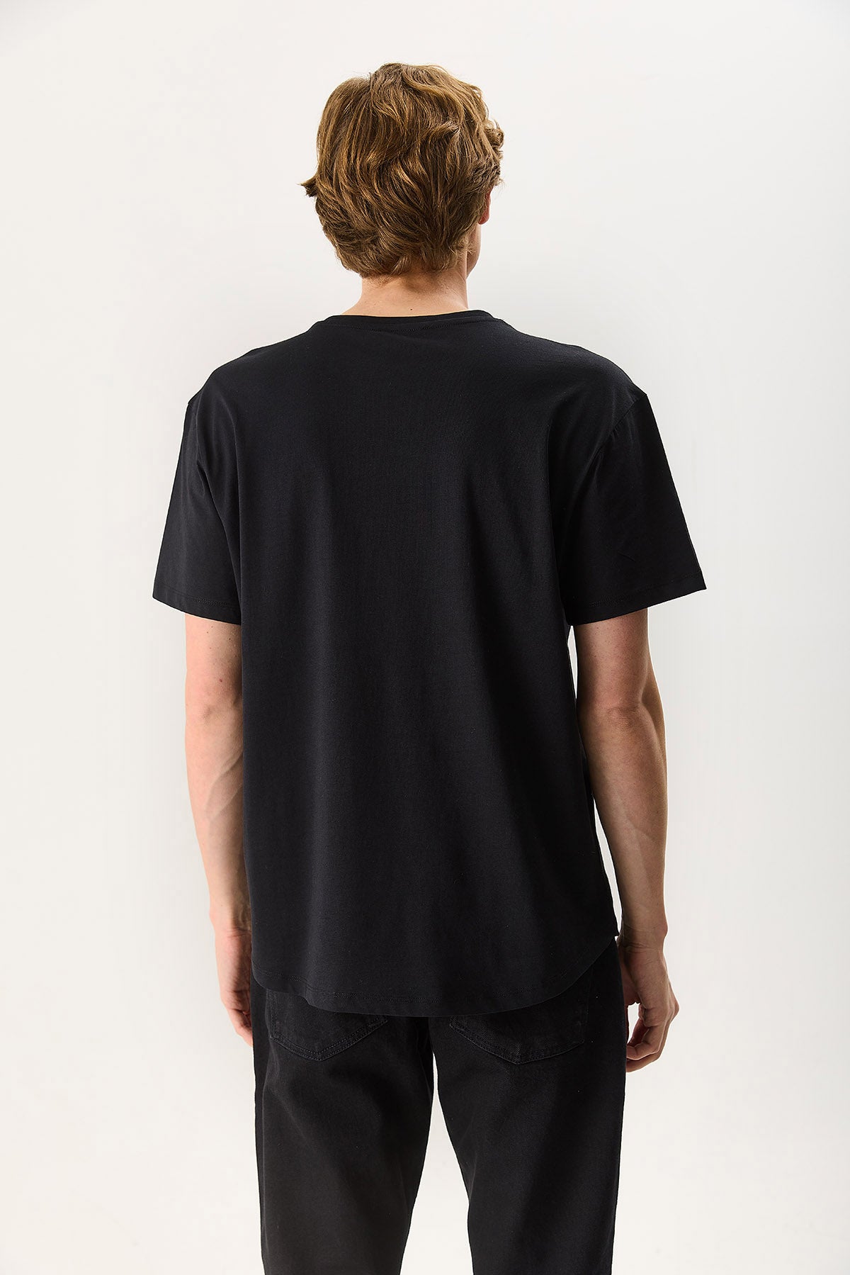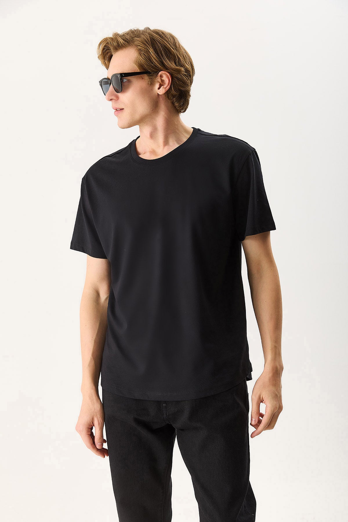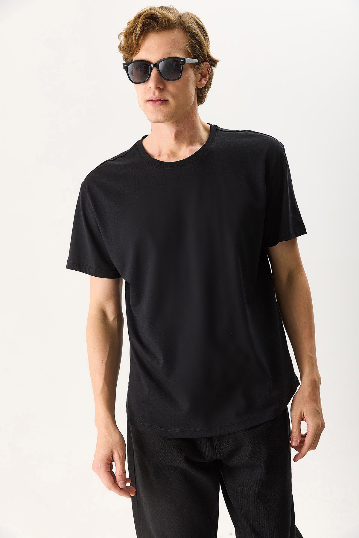 Erkek Walker Bisiklet Yaka Slim Fit Tişört %100 Pamuk - Siyah