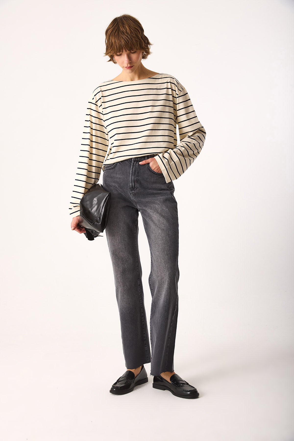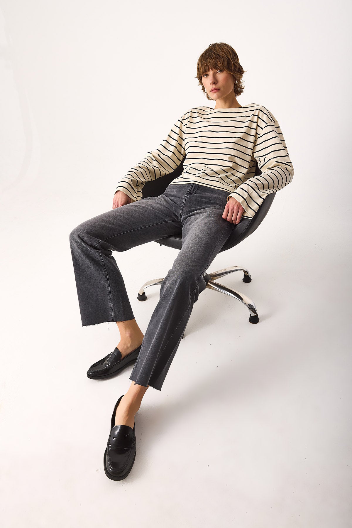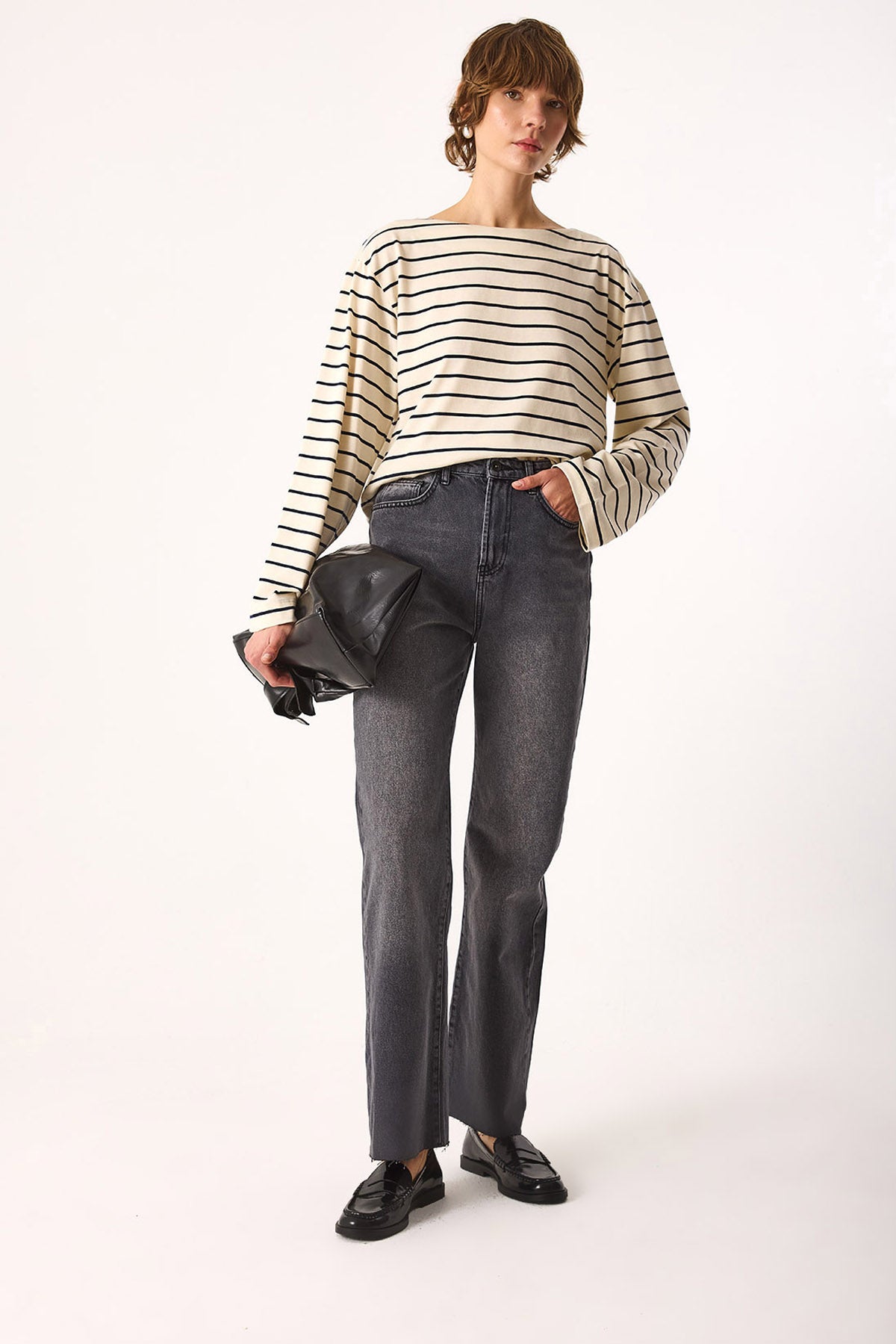 Kadın Wanda Antrasit Wide Leg Jean Pantolon %100 Pamuk - Antrasit