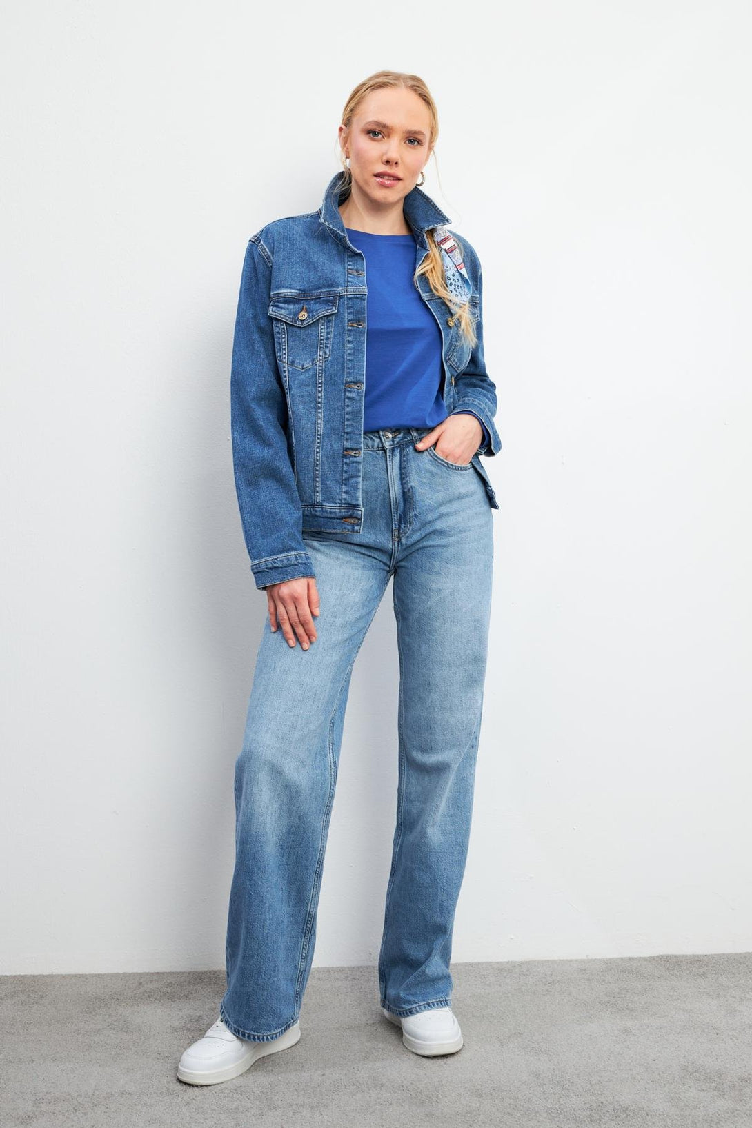 Kadın Wanda Med Blue Wide Leg Jean Pantolon (Lyocell)