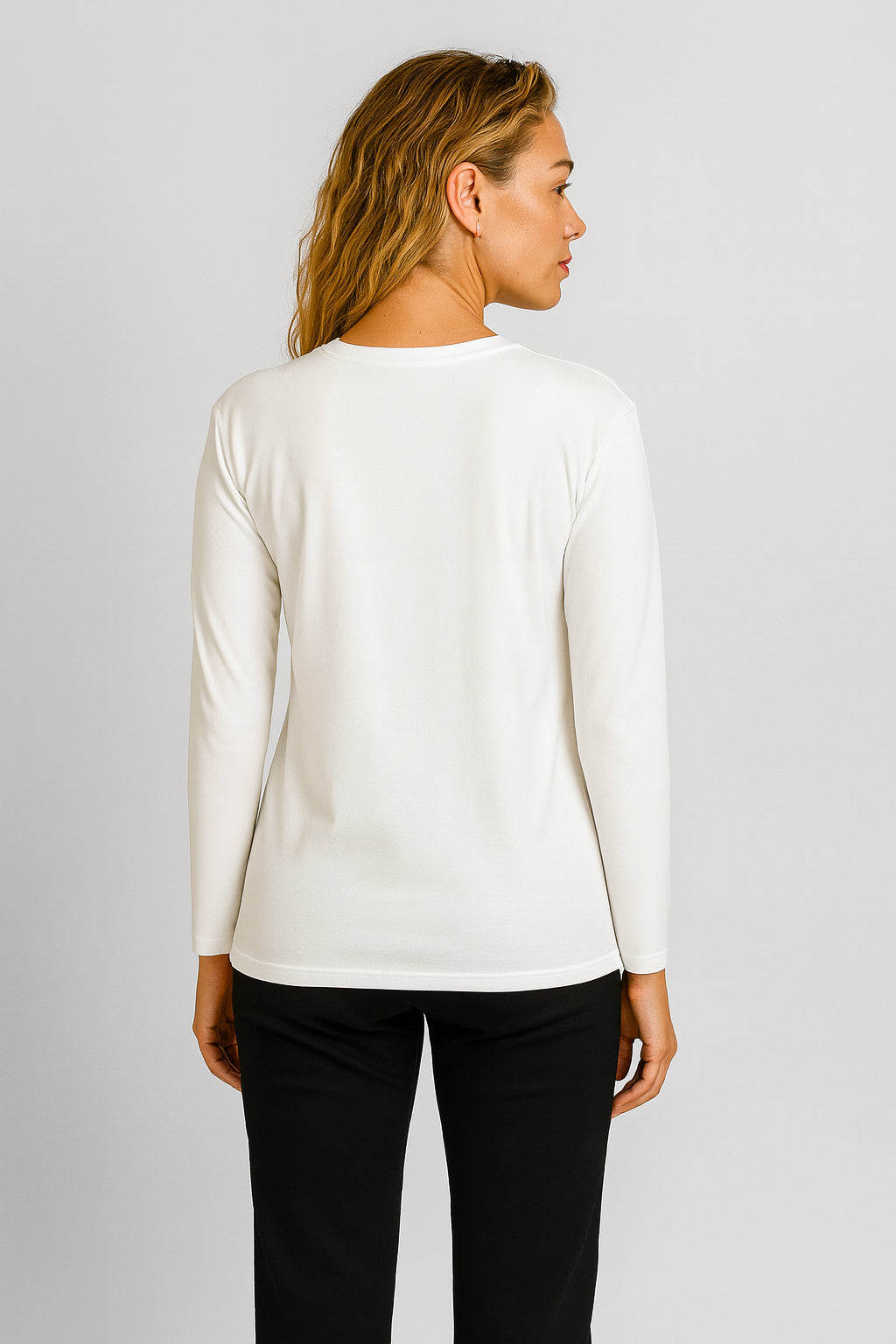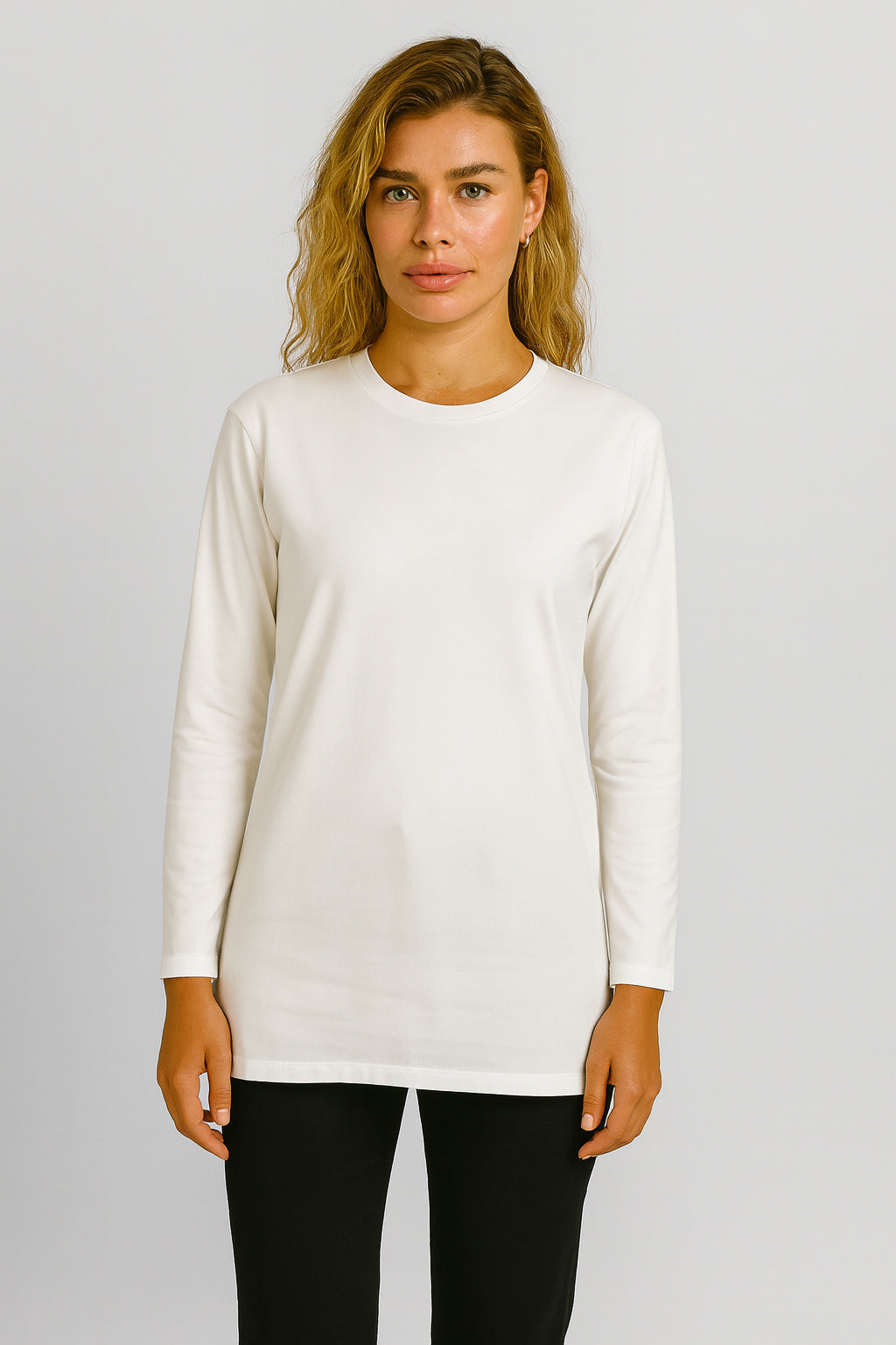 Kadın Yanı Yırtmaçlı Kalın Tişört %100 Pamuk - Fildişi