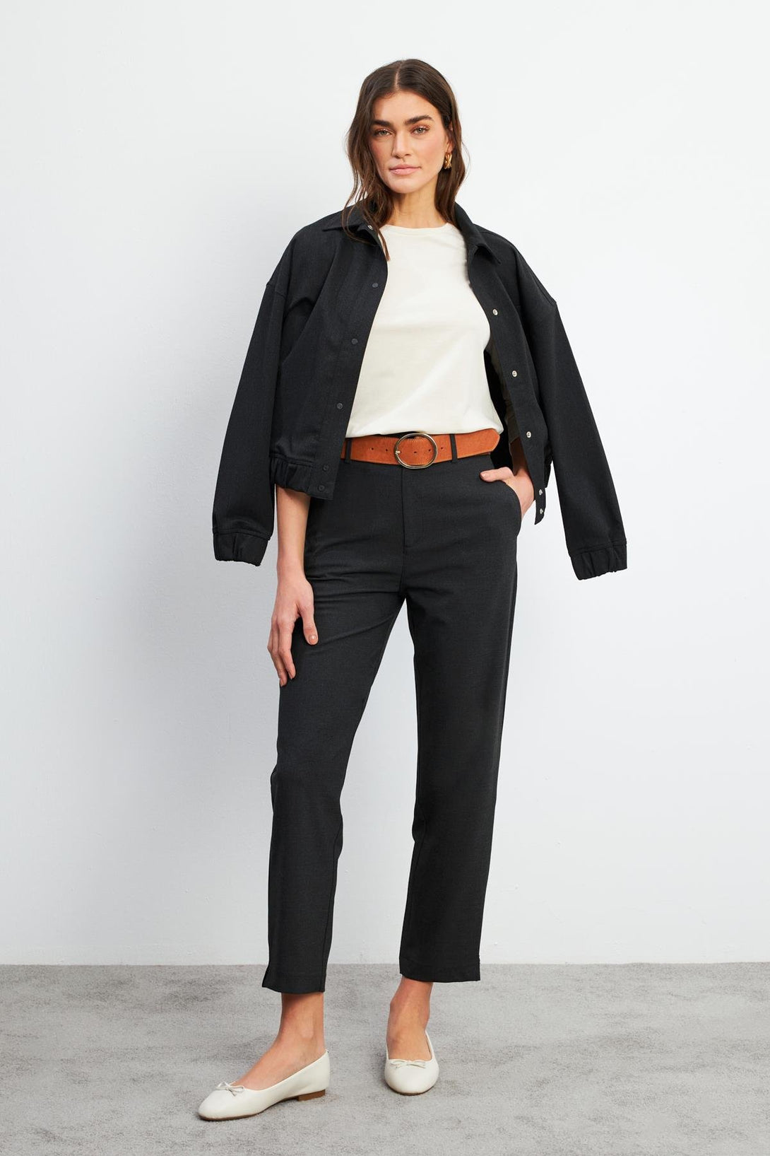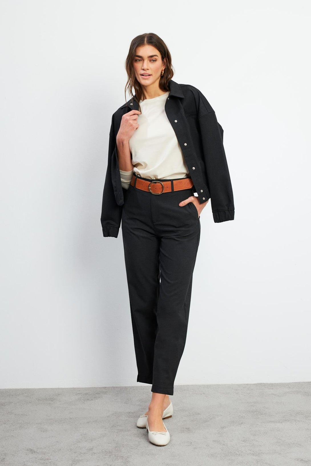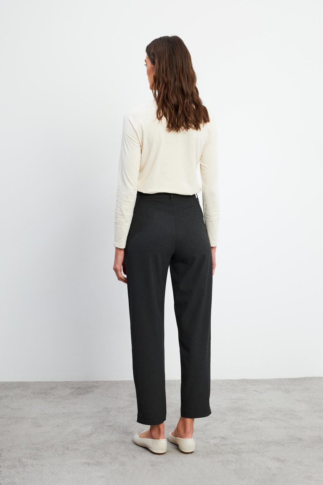 Kadın Yüksek Bel Antrasit Pilili Pantolon